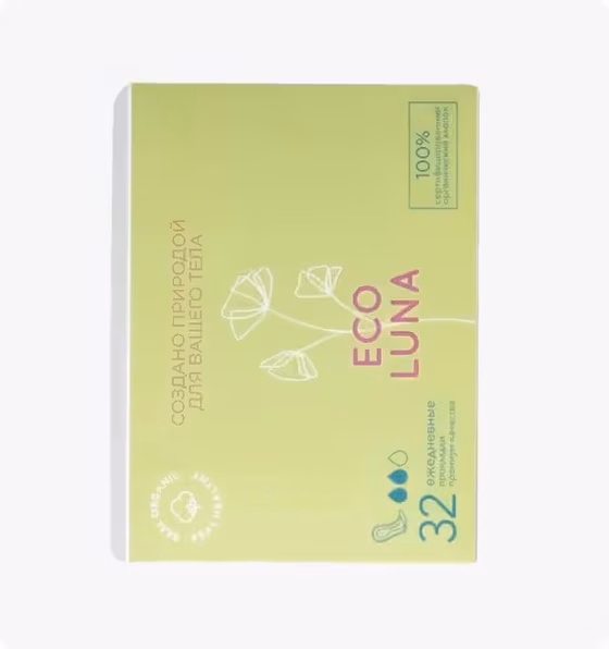 ECO LUNA, ЭКО ПРОКЛАДКИ ЕЖЕДНЕВНЫЕ, 32 ШТ | Health Beauty | Health Beauty