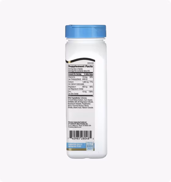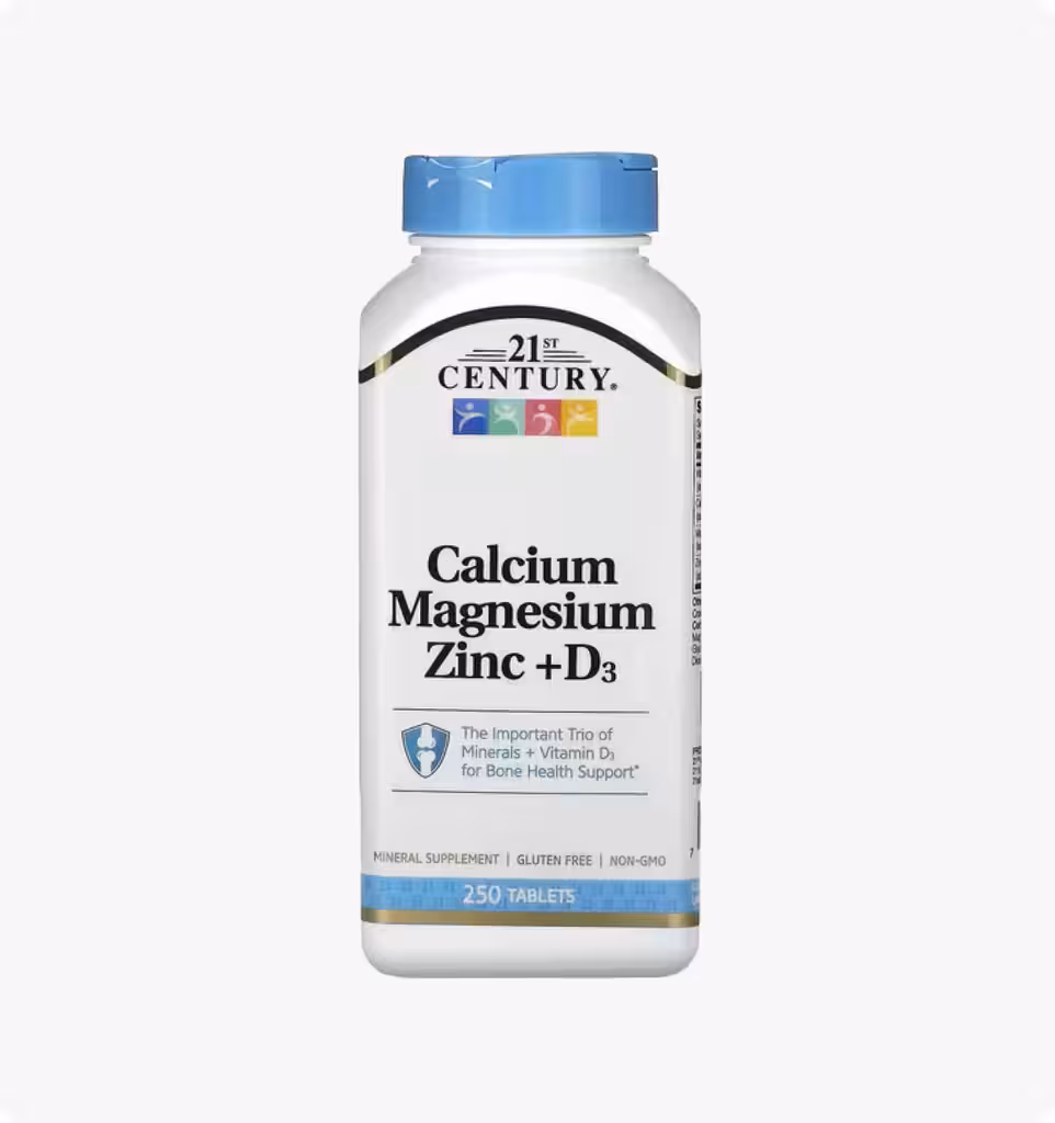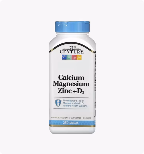 Кальций, магний и цинк, три важных минерала плюс витамин D3, поддерживают здоровье костей, мышц и иммунной системы.