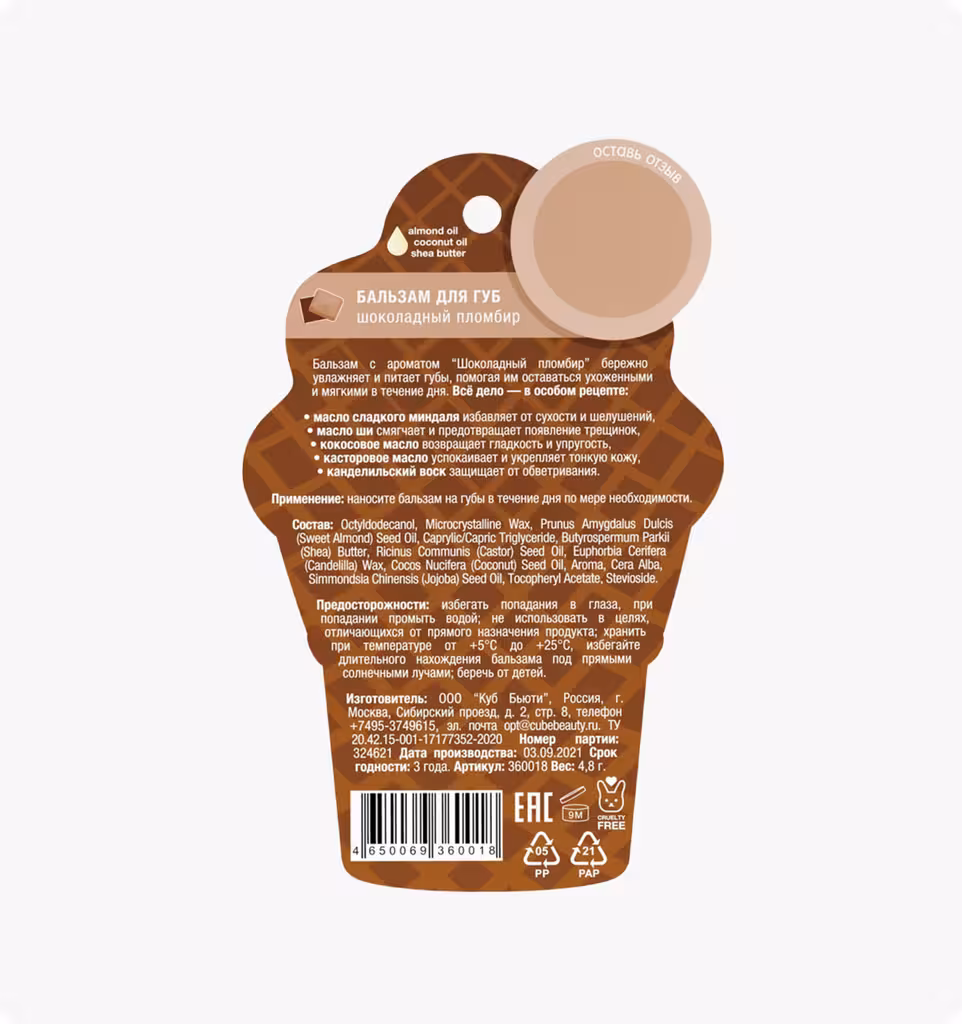 Eat My, Бальзам для губ "Шоколадный пломбир", 4,8 г | Health Beauty | Health Beauty