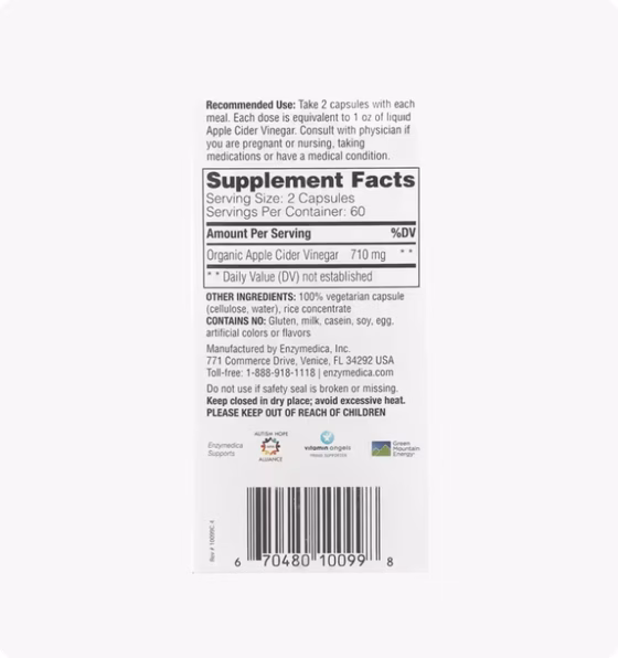 Enzymedica, яблочный уксус с уксусной маткой, 120 капсул (355 мг в 1 капсуле) | Health Beauty | Health Beauty
