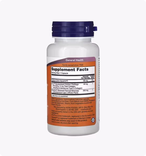 Хрящи — одна из основных соединительных тканей организма, обеспечивающая гибкость и поддержку суставов. Неденатурированный коллаген типа II — это основной структурный белок хряща, отвечающий за его прочность на разрыв и вязкость. Ингредиент UC-II®, полученный из хряща грудной клетки курицы, представляет собой уникальную форму коллагена с неденатурированным (нативным) коллагеном типа II, который работает с иммунной системой, поддерживая здоровье суставов. Клинические исследования на людях показали, что употребление всего одной 40 мг капсулы UC-11®в день может способствовать комфорту суставов, а также их здоровой функции и гибкости.