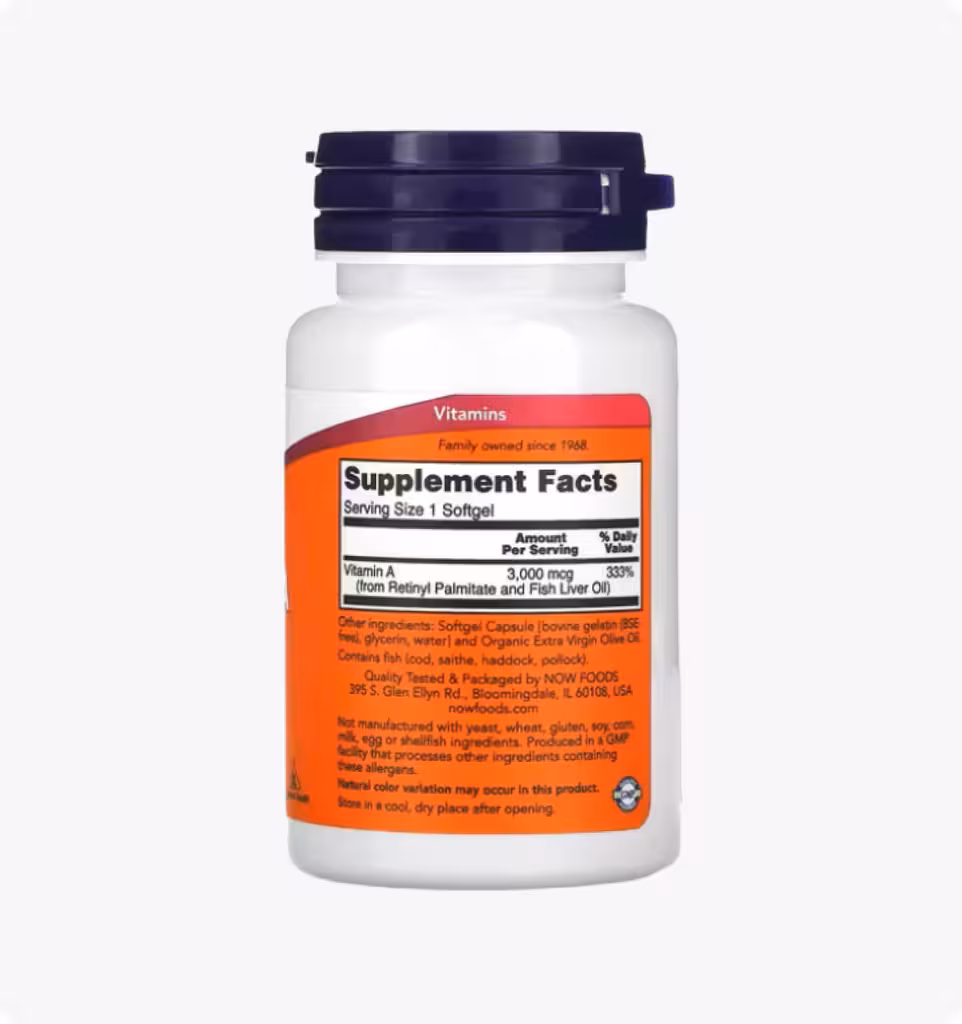 | Витамин А (из ретинилпальмитата и жира из печени рыб) | 3000 мкг | 333% |