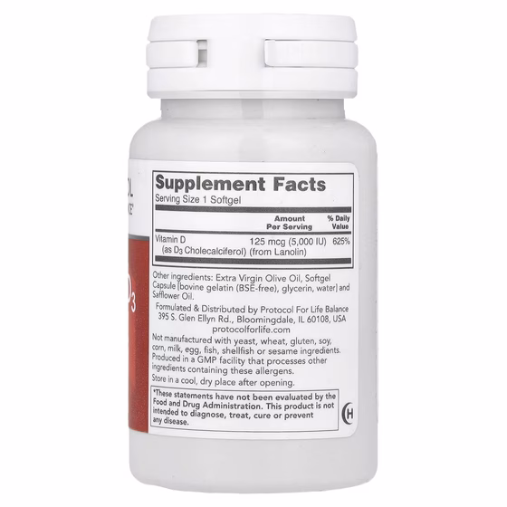 Protocol for Life Balance, Витамин D3, высокая эффективность, 5000 МЕ, 120 мягких таблеток | Health Beauty | Health Beauty