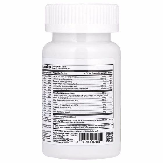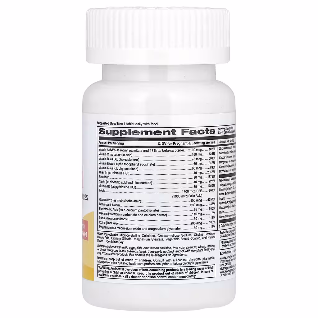 Мультивитамины и поддерживающие травы для беременных SimplyOne® от Super Nutrition® содержат уникальную смесь витаминов, минералов и растительных компонентов для поддержки иммунной системы и выработки энергии во время беременности*.