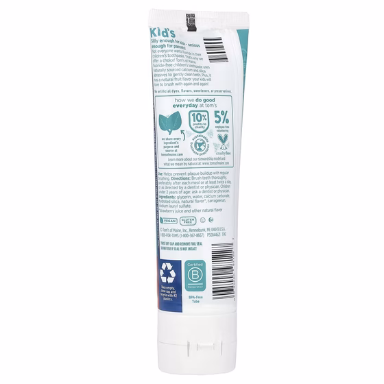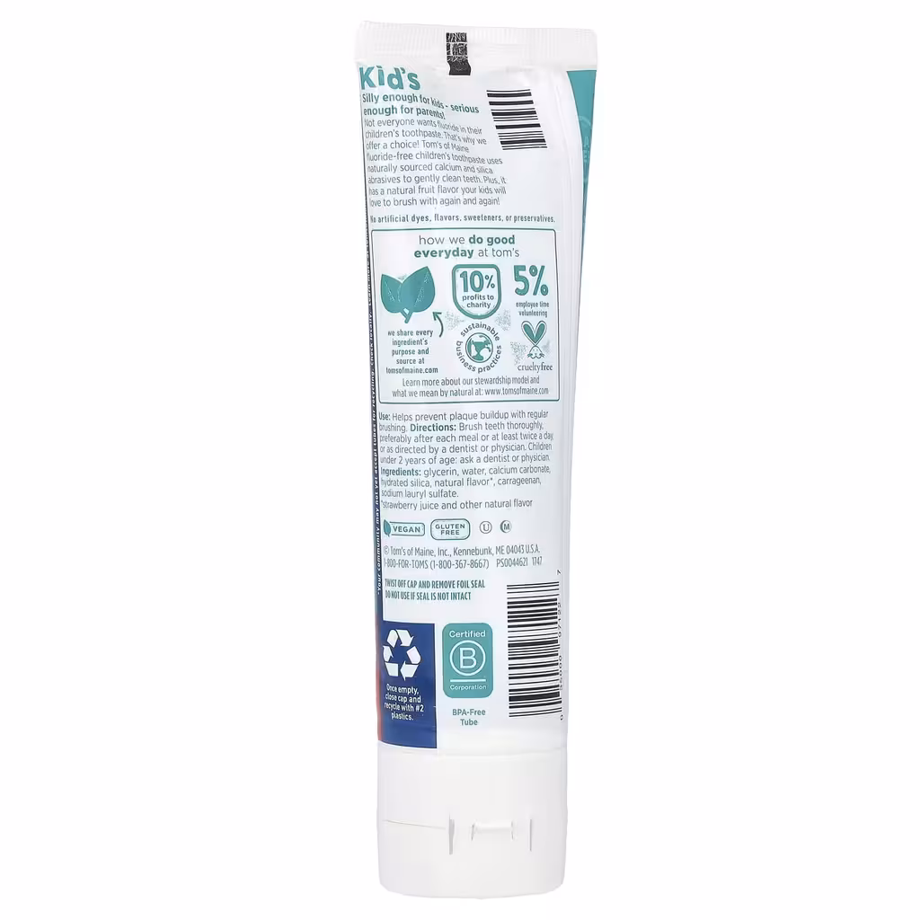 Не всем нужен фторид в зубной пасте для детей. Поэтому мы предлагаем выбор! В детской зубной пасте Tom's of Maine без фторидов используются кальций и диоксид кремния из натуральных источников для бережной чистки зубов. Кроме того, он имеет натуральный фруктовый вкус, который ваши дети будут любить снова и снова!