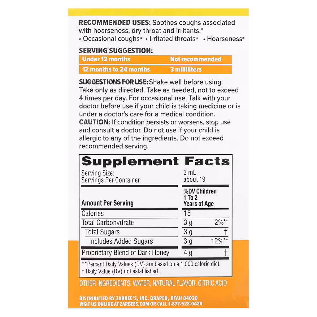 Zarbee's, Детский успокаивающий сироп от кашля, для детей от 12 до 24 месяцев | Health Beauty | Health Beauty