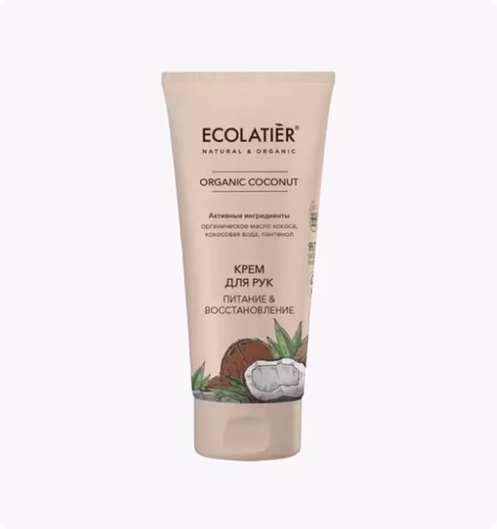 Крем для рук ECOLATIER® Organic Coconut с натуральными питательными ингредиентами прекрасно увлажняет и восстанавливает кожу.