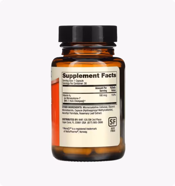 | Витамин K2 (в виде менахинона-7 из нута)^ | 180 мкг | 150% |