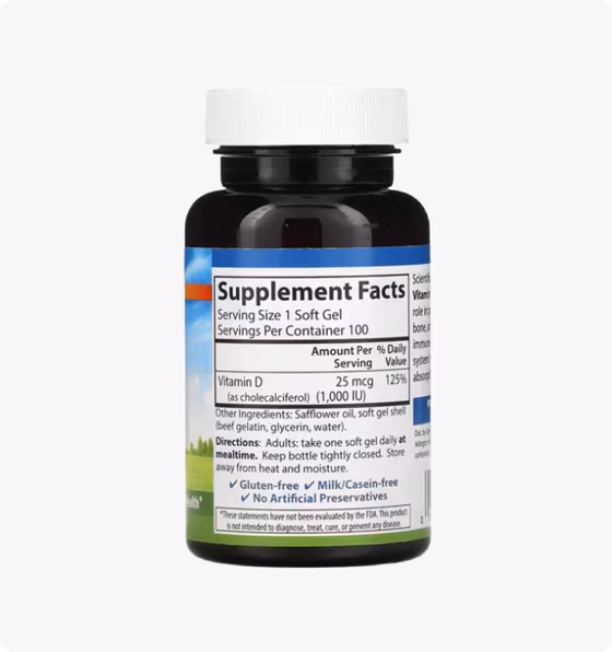 Carlson, Витамин D3, 25 мкг (1000 МЕ), 100 мягких таблеток | Health Beauty | Health Beauty