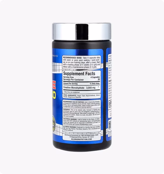 Allmax Creatine - это максимальная чистота и безопасность; Продукт должен соответствовать строгим стандартам, которые соответствуют требованиям независимого тестирования cGMP или превосходят их. Теперь подобрать идеальную добавку в форме простой и удобной капсулы стало еще проще.
