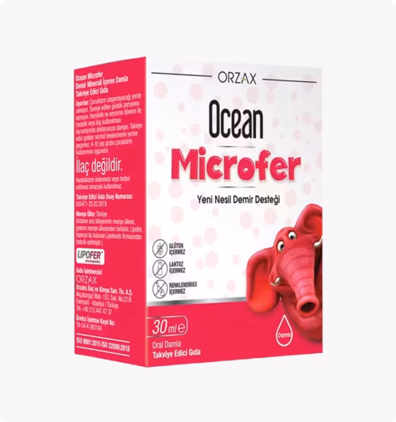 ORZAX Ocean Microfer Drop – пищевая добавка, содержащая источник железа капли для перорального применения. Эффективно и мягко повышает уровень железа в организме, способствует образованию новых эритроцитов и транспортировке кислорода по всему телу. Микроэлемент представлен в виде липофера — микрокапсульного источника железа. Нормальный уровень гемоглобина является одним из ключевых показателей здоровья ребенка. Специально для нормализации уровня гемоглобина и восполнения дефицита железа в организме создан комплекс на основе легко доступного липосомального железа, которая отличается высокой биодоступностью, отличается хорошей переносимостью.