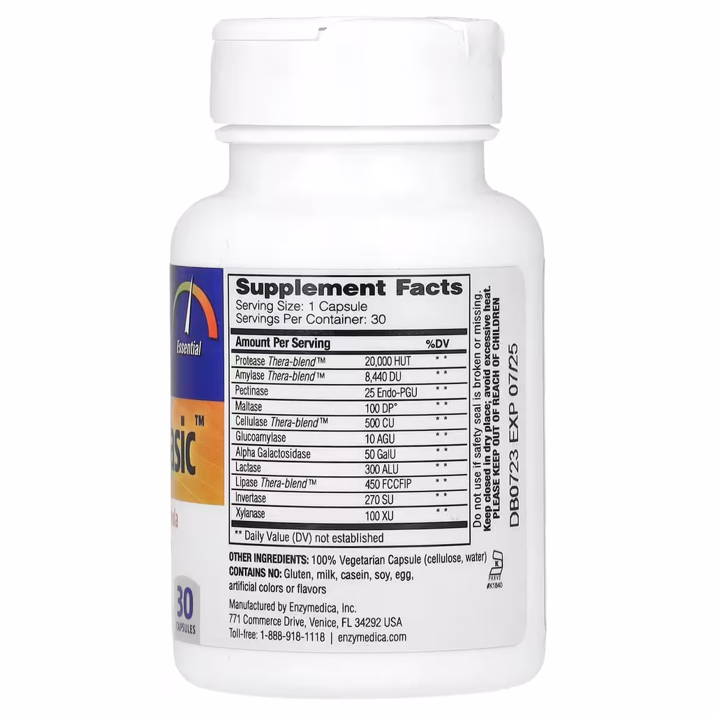 Принимать по 1 капсуле во время каждого приема пищи. При необходимости можно увеличить дозу. Для повышения активности ферментов можно принимать Digest или Digest Gold от Enzymedica.