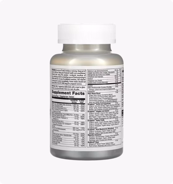 | Овощи и фрукты Ecoganic™ Органический шпинат, органическая кудрявая капуста, органическая свекла, органические томаты, органический сельдерей, органическая петрушка, органический красный болгарский перец, органический зеленый болгарский перец, органический чеснок, органические ростки пшеницы и ячменя | 50 мг | * |
