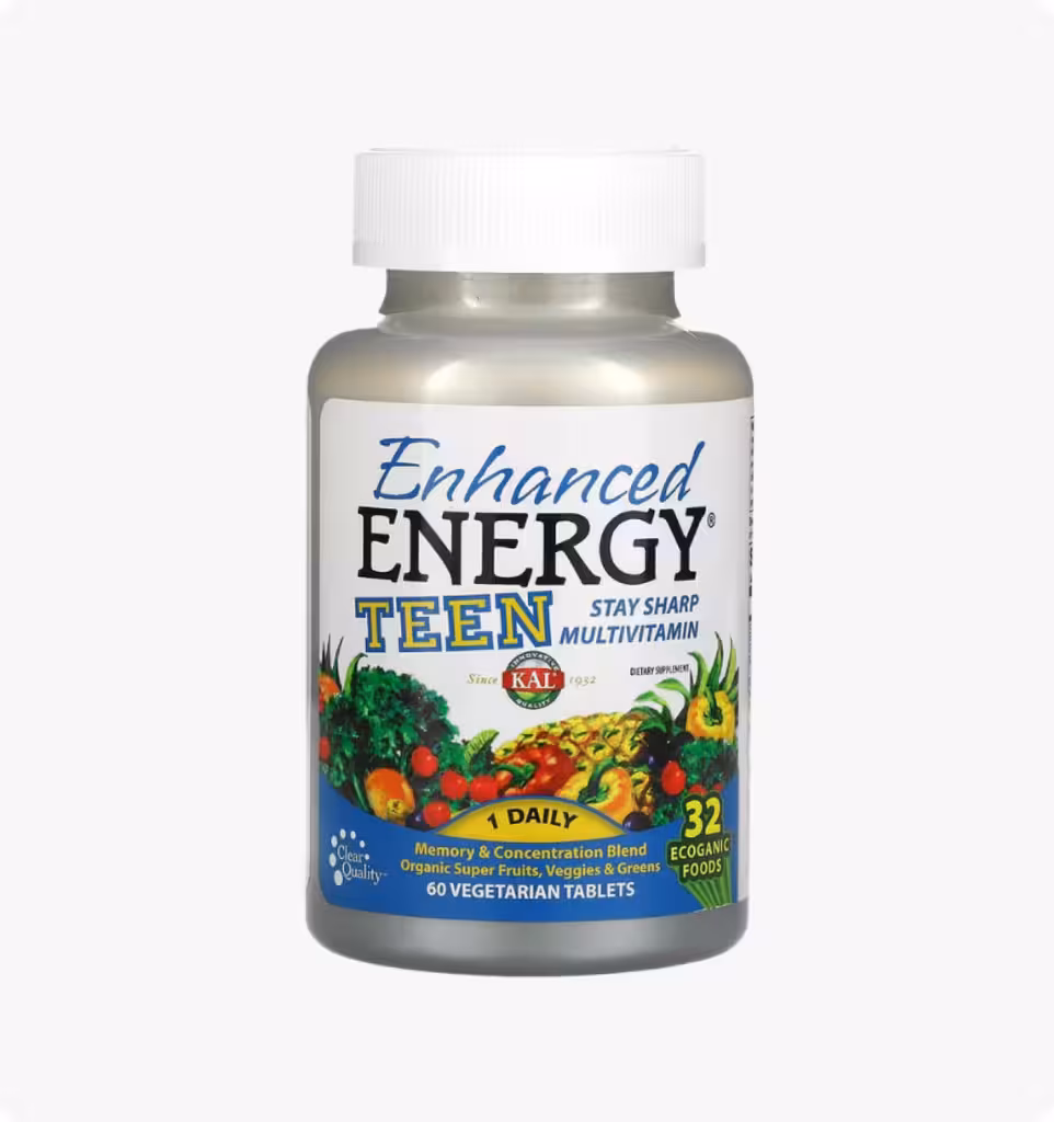 Описание. Получите сбалансированное питание для всего организма в этой удобной таблетке для приема один раз в день с покрытием «Свежая мята» AromaSmooth™. Вегетарианская формула Enhanced Energy® для подростков содержит витамины, минералы и пищевые ферменты, органические фрукты и овощи и смеси Ecoganic™ для энергии, поддержки здоровья кожи и укрепления иммунитета. Эксклюзивная смесь Stay Sharp обеспечивает питательную поддержку для оптимальной памяти и концентрации внимания.