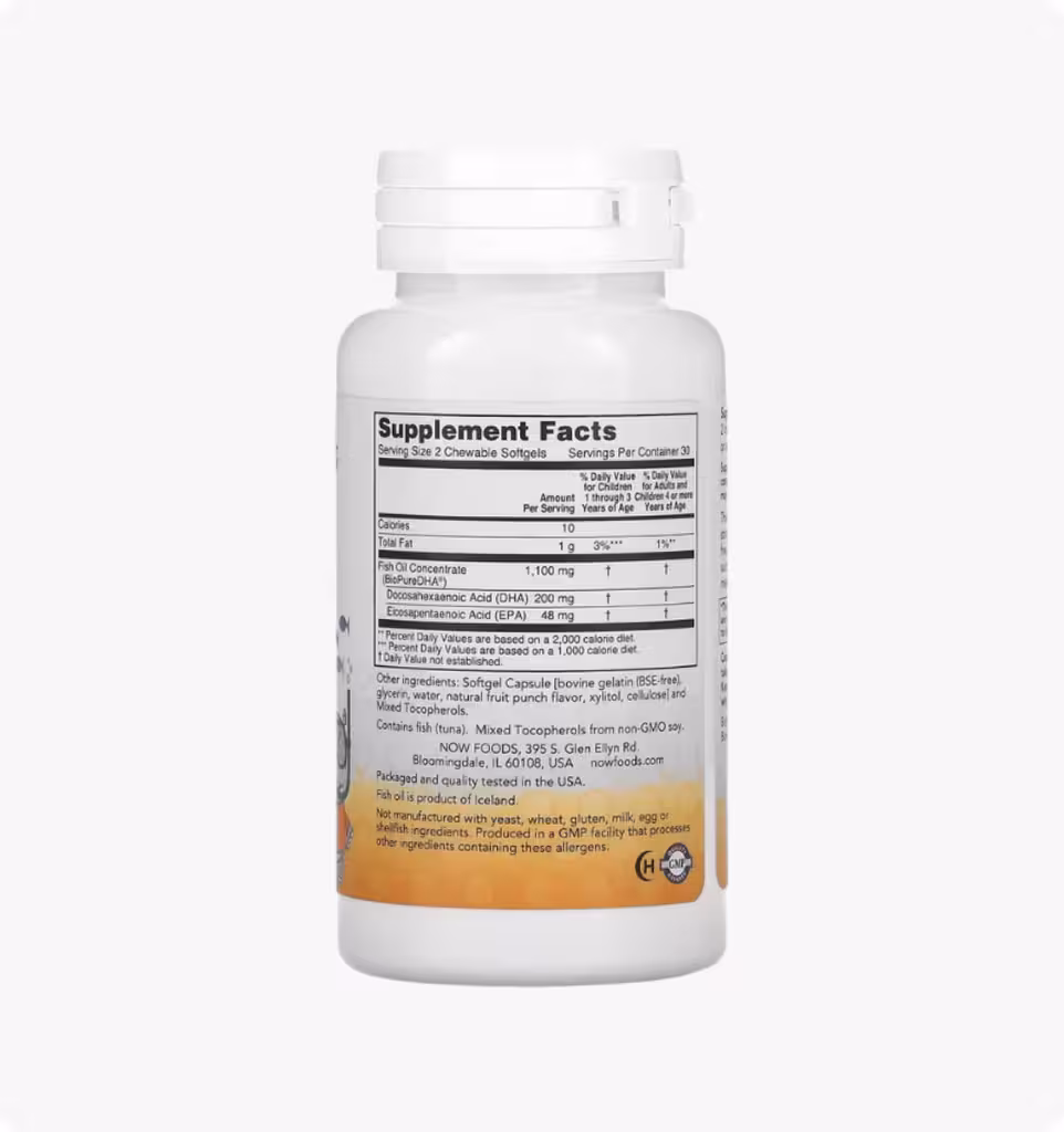 Now Foods, Жевательная ДГК для детей, фруктовый вкус, 60 мягких таблеток | Health Beauty | Health Beauty