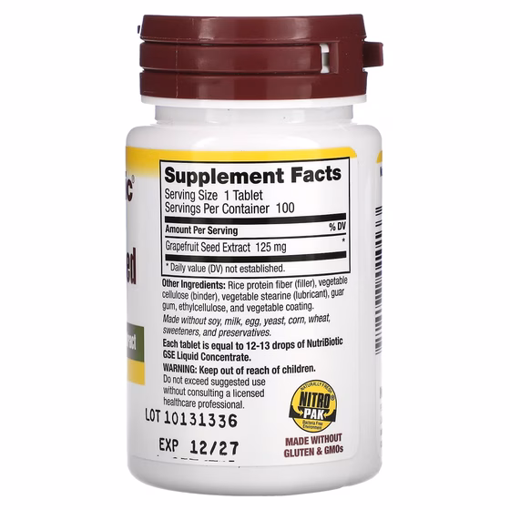 NutriBiotic, экстракт семян грейпфрута, 125 мг, 100 таблеток | Health Beauty | Health Beauty