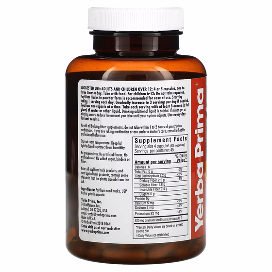 Yerba Prima, капсулы с шелухой семян подорожника, 180 капсул | Health Beauty | Health Beauty