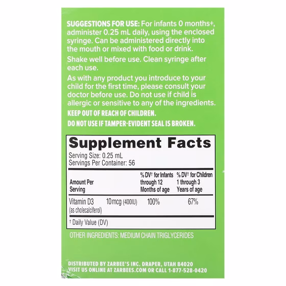 Zarbee's, Витамин D для малышей, 14 мл (0,47 жидк. унции) | Health Beauty | Health Beauty