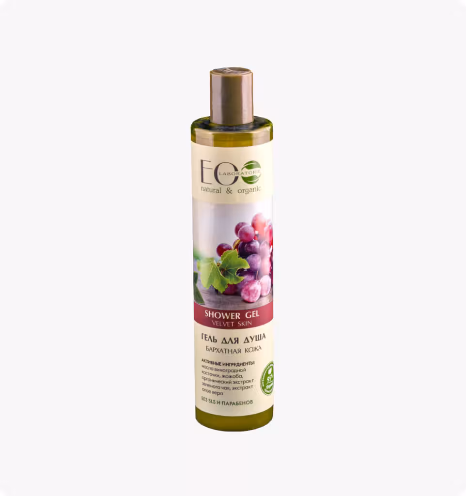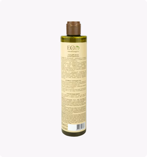 Гель для душа EO Laboratorie Бархатная кожа содержит 95% ингредиентов растительного происхождения. Входящий в состав органический экстракт зеленого чая придает коже упругость, оказывает на кожу антибактериальное и противовоспалительное воздействие, улучшает насыщение кожи биологически активными и питательными веществами. Экстракт алое вера увеличивает синтез коллагена, стимулирует обменные процессы, тонизирует и увлажняет кожу. Масло лаванды улучшает приток крови к клетками кожи и тем самым улучшая доставку питательных веществ и кислорода к клеткам, что эффективно способствует как поддержанию молодости кожи, так и ее обновлению и восстановлению. Экстракт магнолии увлажняет, смягчает кожу, делает ее шелковистой, препятствует обезвоживанию. Успокаивает кожу после пребывания на солнце, нейтрализует вредное воздействие ультрафиолетовых лучей. Продукт не содержит SLS, парабенов и силиконов. Объем 350мл.