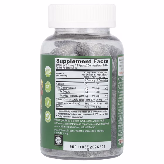 Продукт следует полностью пережевывать под наблюдением взрослого. Дети в возрасте от 2 до 3 лет полностью разжевывают одну (1) жевательную таблетку в день. Дети от 4 лет полностью разжевывают по две (2) жевательные таблетки в день.