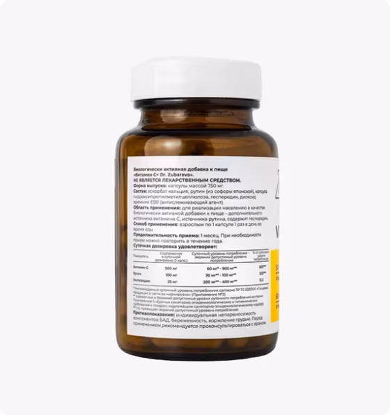 Dr.Zubareva, Витамин C 500 мг, 60 капсул | Health Beauty | Health Beauty