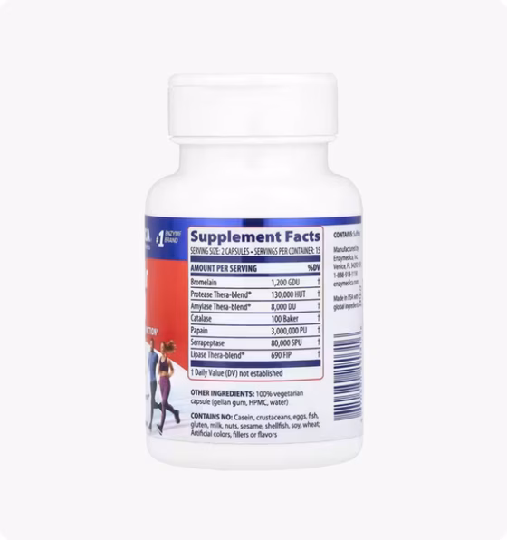 Содержит серрапептазу с бромелаином, папаином и дополнительными ферментами, которые поддерживают усталость мышц и суставов и поддерживают естественную реакцию организма на перенапряжение и физические нагрузки.