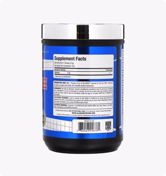 Смешать 3 г (прибл. 3/4 ч. л.) таурина AllMax в 6–8 унциях (180–240 мл) воды или сока, и выпить за 30 минут до тренировки.