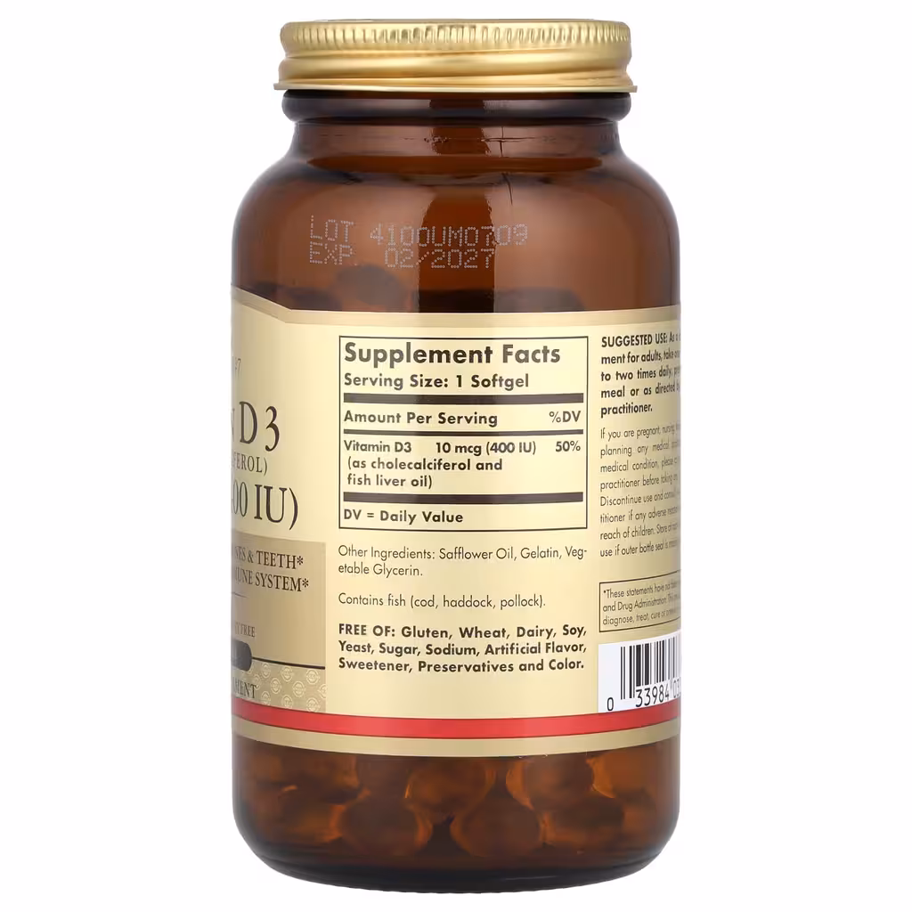 Витамин D — это жирорастворимый витамин, способствующий усвоению кальция для здоровья костей и зубов. Витамин D также поддерживает здоровье иммунной системы. В этом продукте используется жир из печени глубоководных рыб холодных морей. Жир очищен от ртути и ПХБ. Формула выпускается в виде мягкой желатиновой капсулы на масляной основе, что способствует ее оптимальному всасыванию и усвоению.