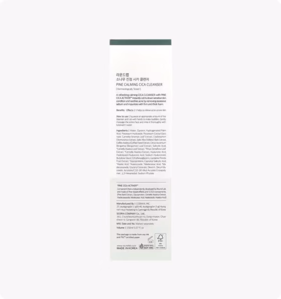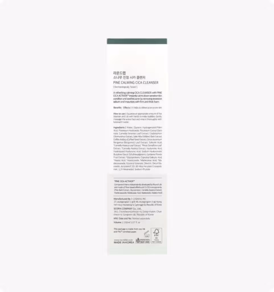 Освежающее успокаивающее средство CICA CLEANSER с PINE CICA ACTIVER ™ мгновенно успокаивает чувствительную кожу и успокаивает акне, удаляя излишки кожного жира и загрязнения с помощью плотной и густой пены.