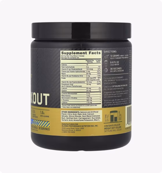 Optimum Nutrition, Gold Standard Pre-Workout, вкус «Черника-лимонад», 300 г | Health Beauty | Health Beauty