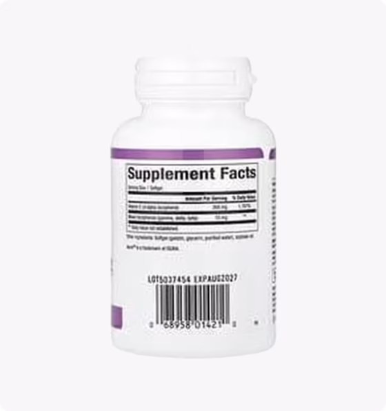 Наш витамин E (268 мг) — это высокоэффективный натуральный витамин Е в форме d-альфа-токоферола со встречающимися в природе гамма-, дельта- и бета-токоферолами. Витамин Е — антиоксидант, который защищает клеточные мембраны и предотвращает повреждение организма свободными радикалами. Он поддерживает сердечно-сосудистую систему и общее состояние здоровья. Ежедневный прием витамина Е особенно важен для поддержания здорового роста клеток и для людей, ведущих активный образ жизни.