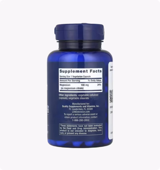 Исследования показывают, что цитратная соль магния хорошо всасывается в кровяной поток. Наша добавка с магнием (цитратом) содержит 100 мг элементарного высокобиодоступного магния в каждой капсуле для удобного приёма.