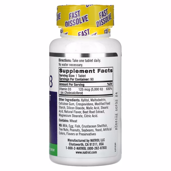 Natrol® D3, быстрое растворение, 5000 МЕ: