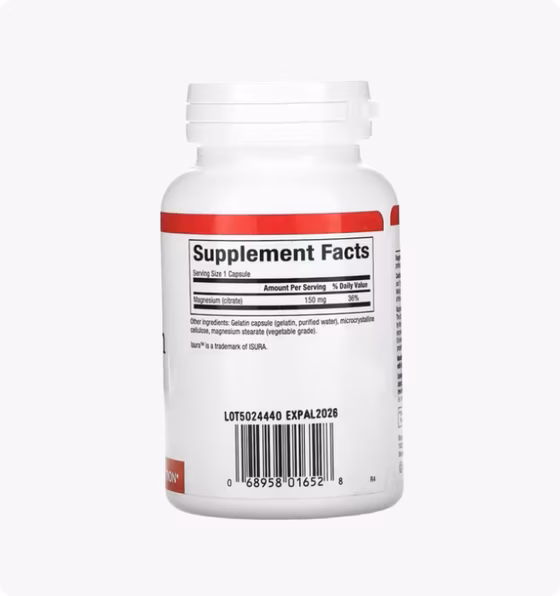 Цитрат магния заключен в капсулы, которые легко глотать. Цитратная форма магния чрезвычайно хорошо усваивается и отлично переносится организмом. Магний принимает участие в сотнях ферментных реакций и необходим для нормальной работы сердца. Магний участвует в синтезе белка, углеводном обмене, он нужен для правильной работы мышц, помогает усваивать кальций и калий.
