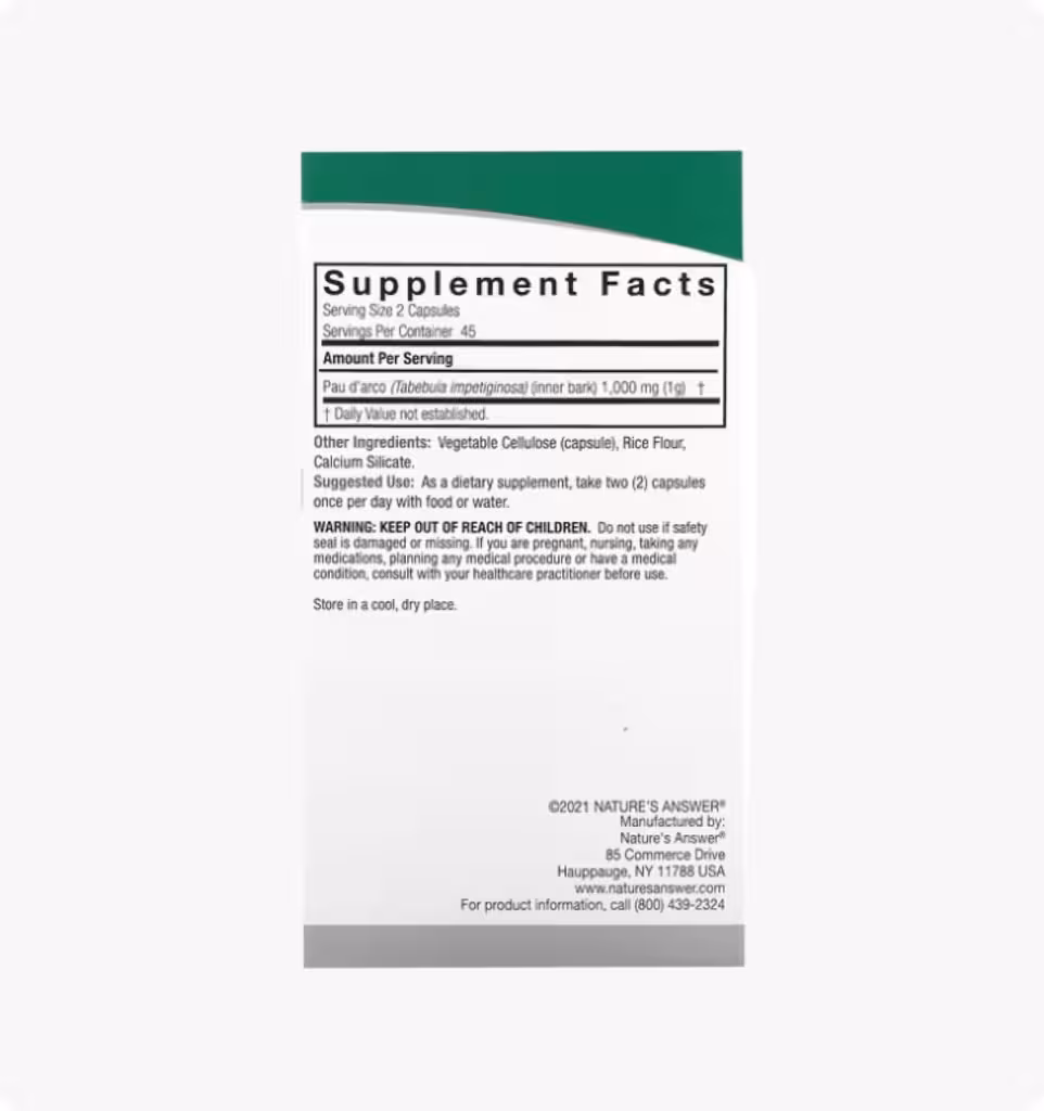 | Внутренний слой коры муравьиного дерева (Tabebuia impetiginosa) | 1000 мг (1 г) | † |