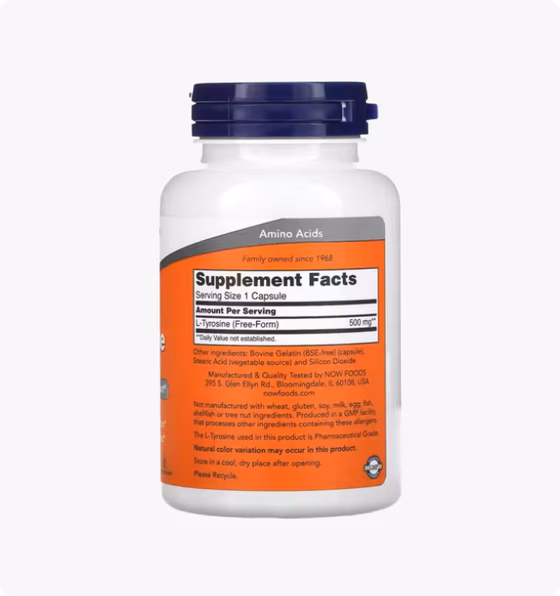 L-тирозин является условно незаменимой аминокислотой, необходимой для производства нейромедиаторов дофамина, адреналина и норадреналина, а также для кожного пигмента, меланина. Норадреналин (норэпинефрин) и адреналин (эпинефрин) являются основными действующими механизмами в реакции организма на стресс и, наряду с дофамином, помогают поддерживать хорошее настроение и умственную активность. Кроме того, L-тирозин особенно важен для нормального функционирования щитовидной железы.