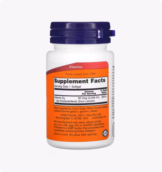 Now Foods, Витамин D3, высокоактивный, 2000 МЕ, 30 капсул | Health Beauty | Health Beauty