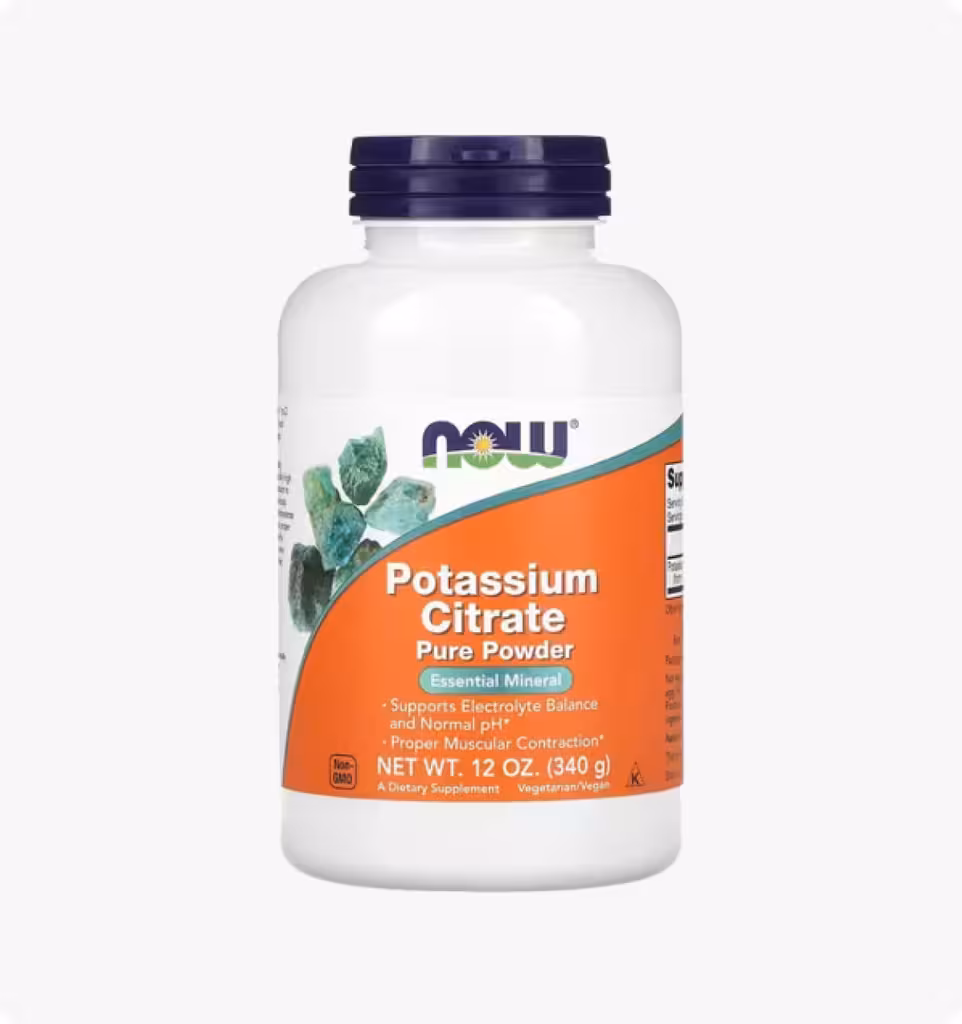 Калий — незаменимый микроэлемент, который встречается во многих продуктах питания. Самое большое количество калия содержится в овощах и фруктах. Калий необходим для поддержки баланса жидкости на уровне клеток, кислотно-щелочного баланса и всего организма в целом. Кроме того, этот элемент требуется для обеспечения нормальной мышечной деятельности, поддержки работы сердца и передачи нервных импульсов. Цитрат калия хорошо усваивается и отличается более высокой биодоступностью по сравнению с обычным калием.