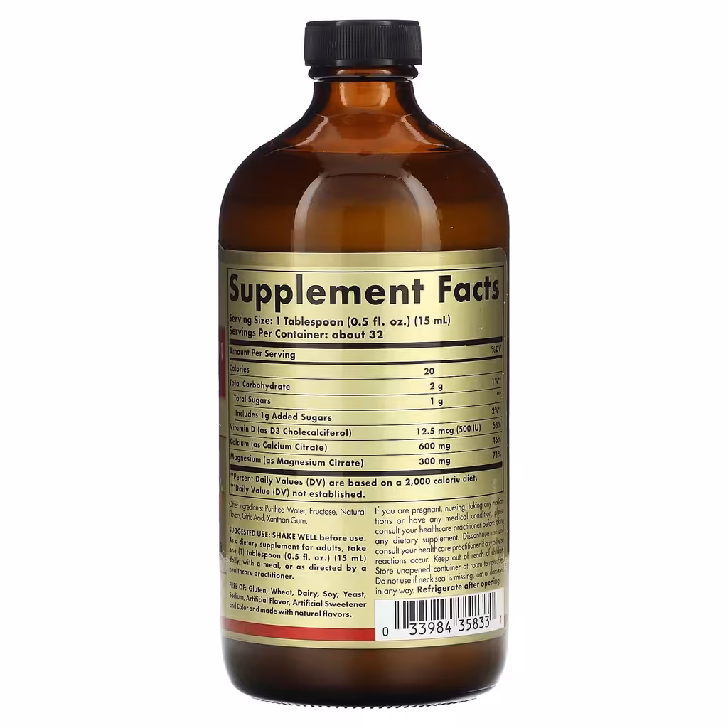 Solgar, цитрат кальция и магния, с витамином D3, в жидкой форме, вкус натуральной клубники, 473 мл | Health Beauty | Health Beauty