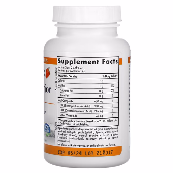 Nordic Naturals, ProOmega Junior, клубничный вкус, 340 мг, 90 мягких таблеток | Health Beauty | Health Beauty