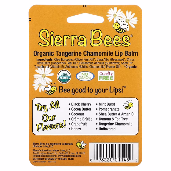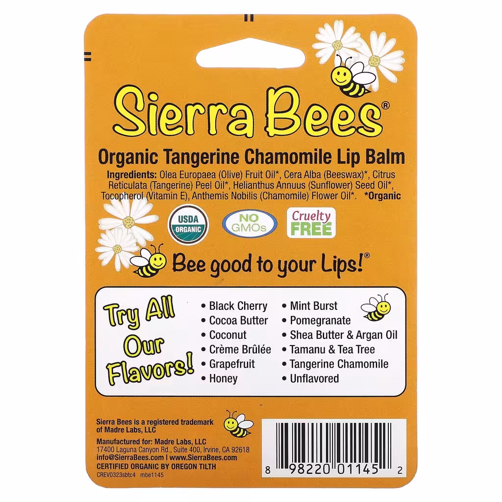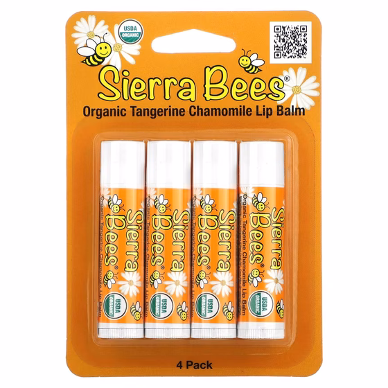 Sierra Bees, Органические бальзамы для губ, мандарин и ромашка, 4 шт. в упаковке, 0,15 унции (4,25 г | Health Beauty | Health Beauty