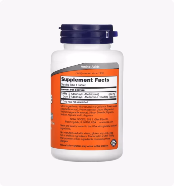 SAMe (S-аденозилметионин), соединение, естественное для организма, является компонентом многих биохимических реакций, в том числе тех, которые влияют на биохимию мозга и здоровье суставов. Многочисленные исследования показали, что SAMe может помочь облегчить временные незначительные боли, возникающие в результате перенапряжения. Кроме того, поскольку SAMe также необходим для синтеза нейромедиаторов, он играет важную роль в поддержке настроения. SAMe от NOW® имеет кишечнорастворимое покрытие, благодаря чему он очень хорошо переносится и защищен от разложения.