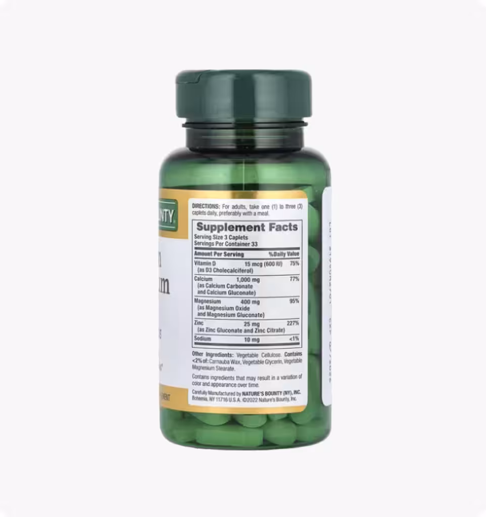 Nature's Bounty, Кальций, магний и цинк с витамином D3, 100 капсуловидных таблеток в оболочке | Health Beauty | Health Beauty
