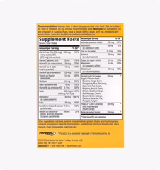 | Порошковые смеси Orchard Fruits™ и Garden Veggies™: голубика, апельсин, морковь, гранат, слива, клубника, яблоко, свекла, груша, томат, малина, брокколи, вишня, шпинат, цветная капуста, виноград, асаи, спаржа, банан, брюссельская капуста, кочанная капуста, клюква, огурец, горох, ананас, тыква | 100 мг | ** |