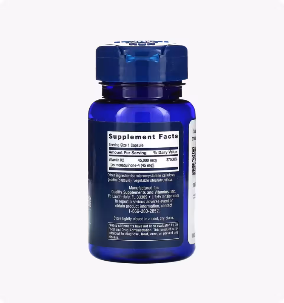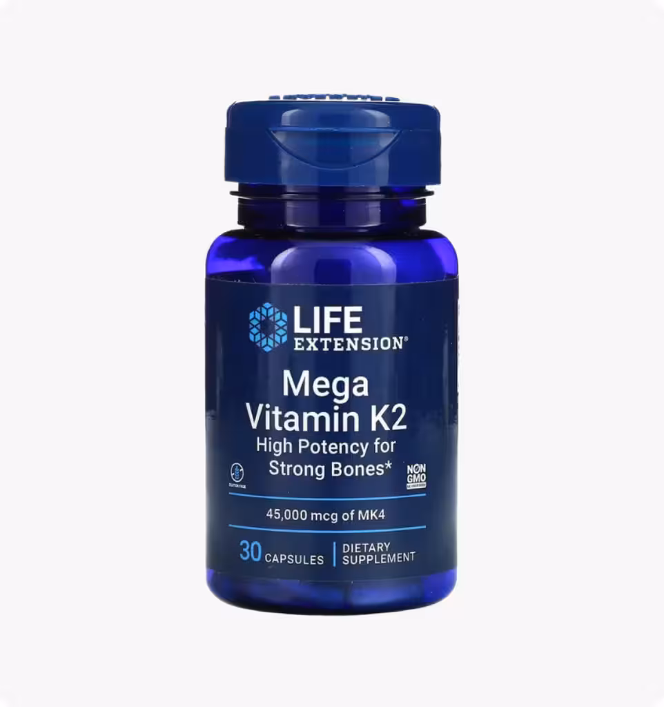 Если вы заботитесь о поддержании прочности и здоровой плотности костей, подумайте о добавлении мега-витамина K2 высокой эффективности для укрепления костей в свой ежедневный режим. Он содержит 45 000 мкг (45 мг) витамина К2 (менахинон-4) в каждой дозе, такое же количество способствует поддержанию минеральной плотности костей.